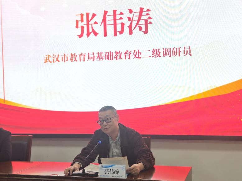 武汉市教育局基础教育处二级调研员张伟涛发表讲话,首先向参训学员表示欢迎,向筹备单位致谢。他指出,中小学入学招生和学籍管理是基础教育“第一道门槛”,关系教育公平与社会和谐,当前“公民同招”“阳光招生”等工作对从业人员能力提出更高要求,举办本次5天集中培训,旨在帮助学员破解工作难点、推动工作提质。他对学员提出三点要求:一是提高政治站位,从践行以人民为中心发展思想的高度认识培训意义,学深悟透政策、练熟练精技能;二是严守培训纪律,遵守规章制度,按时参训、积极交流,营造良好学习氛围;三是坚持学以致用,结合工作实际梳理薄弱环节,将所学转化为解决问题的举措,确保招生公平、学籍管理规范,为武汉基础教育高质量发展贡献力量。