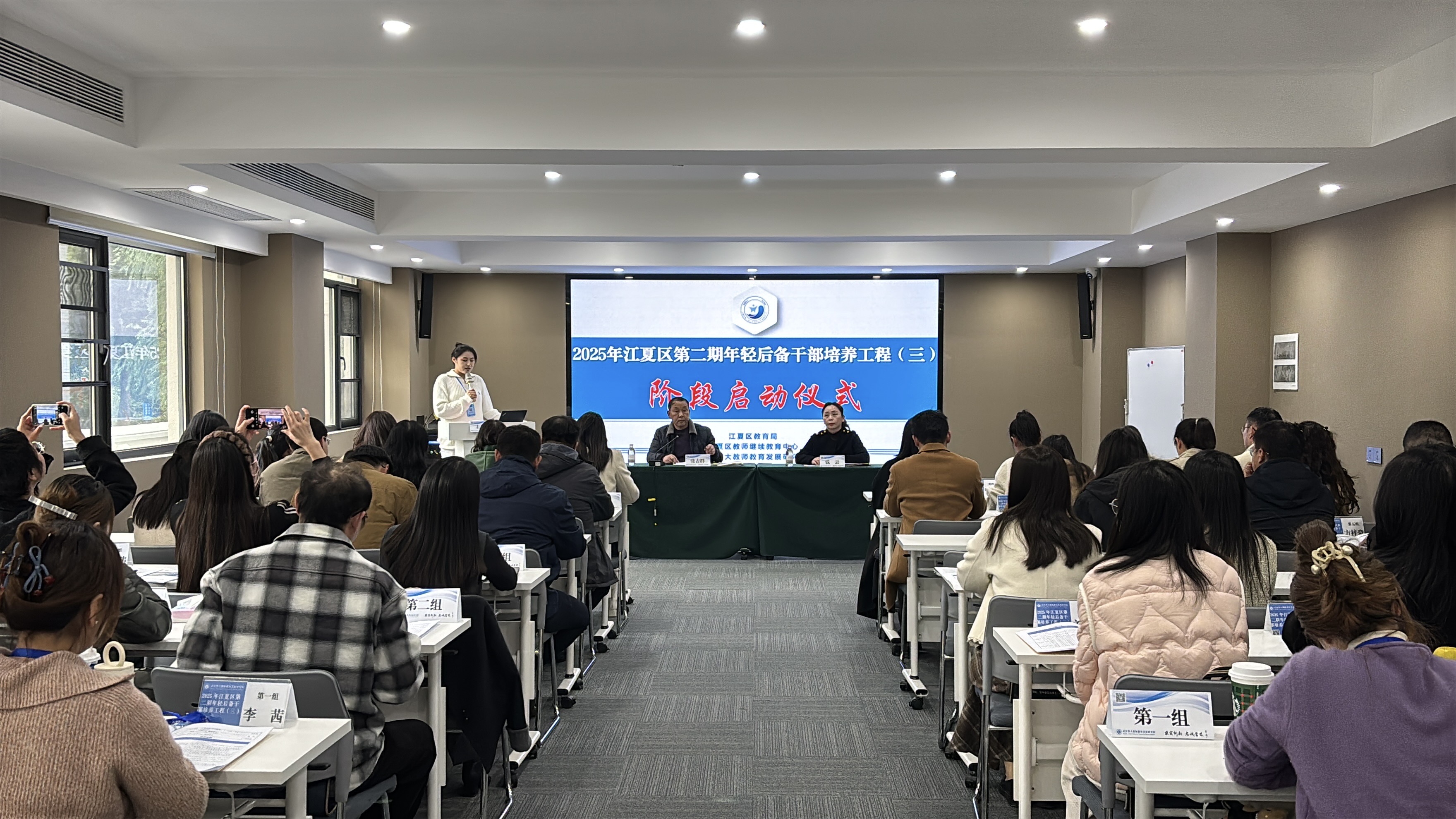 “立身以立学为先,立学以济世为要。”12月2日,2025年江夏区第二期年轻后备干部培养工程(三)在武汉正式启动。来自全区教育系统的50名年轻后备干部齐聚一堂,将通过为期6天的系统化培训,锤炼履职本领、激发创新思维,为江夏区教育高质量发展注入新动能。江夏区教师继续教育中心副书记张吉群、江夏区教师继续教育中心班主任钱云及全体参训学员参加阶段启动仪式。