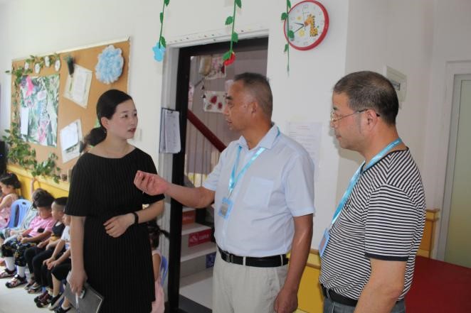 洪山区人民政府教育督导室委托第三方——武汉华大教师教育发展研究院于6月28日对洪山区金牛子中英文幼儿园办园行为进行督导评估。参与此次评估的专家有:原湖北省商务厅幼儿园园长杜蕴;原洪山区街道口幼儿园园长赵卫红;原洪山区井岗山小学校长郑新桥;原洪山区和平小学书记白少斌。